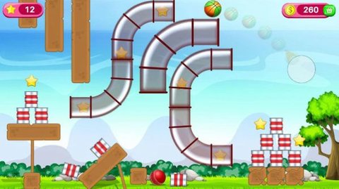 1、请记住,您可以使用的篮球数量有限。如果无法成功粉碎所有罐头,则将视为失败。有趣的是,当难度增加时,许多障碍物将添加到场景中。机构,您必须避免或使用它们。