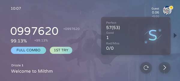 没有Bad和Miss,只有Good和Perfect时,会显示FULL COMBO。