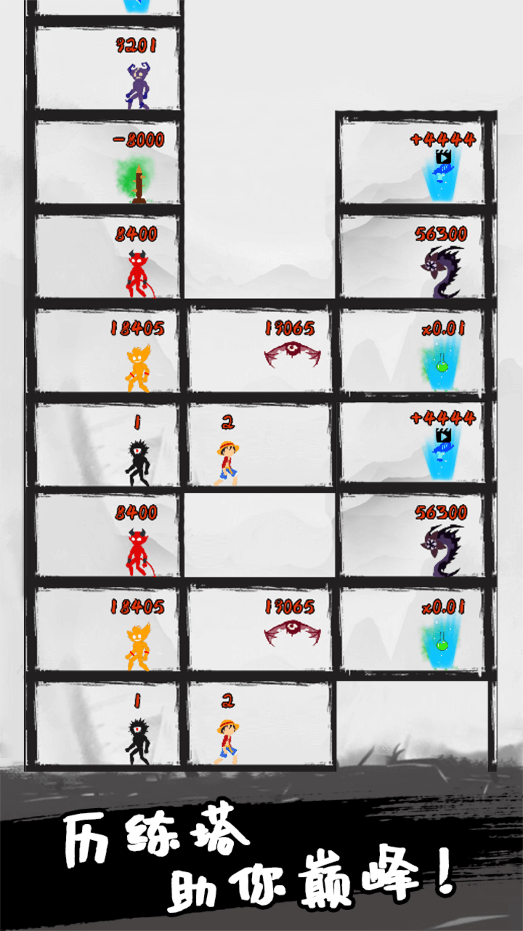 3、专注于自己的级别,挑战各个级别,成功完成各种登塔挑战,并与BOSS对抗!
