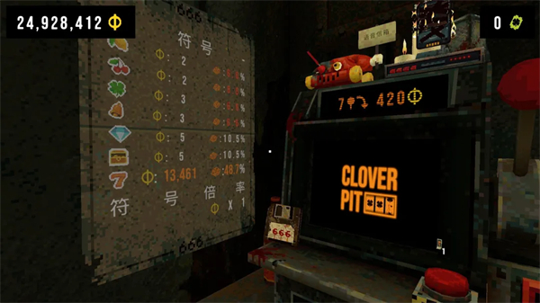 不过《四叶草深渊》之所以是个游戏,而非赌博,是因为它不是单纯看运气的。游戏里,你可以在老虎机旁的黑板上,看到每种图案出现的精准概率,此外,你能使用各种道具,来增加自己获取的金钱。