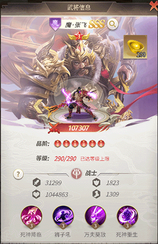 2、许诸、庞统燃烧二人组越战越强,魔张飞作为肉盾提供嘲讽维护燃烧二人组持续战斗回合且有复活技能。