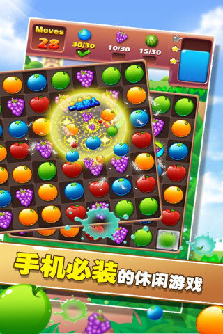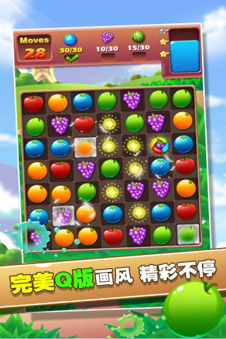 1、连线三个或三个以上相同的水果. 2、爆破水果,收集满指定数量的水果. 3、连接更多的水果,尽可能的获取分数