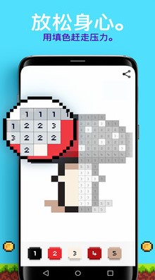 非常好玩的像素风格填色手游。你可以用耐心和毅力创造您自己的作品集,也可以调整您充满焦虑的小心情。游戏上手容易,老少咸宜,而且轻松休闲,打发时间的神器!