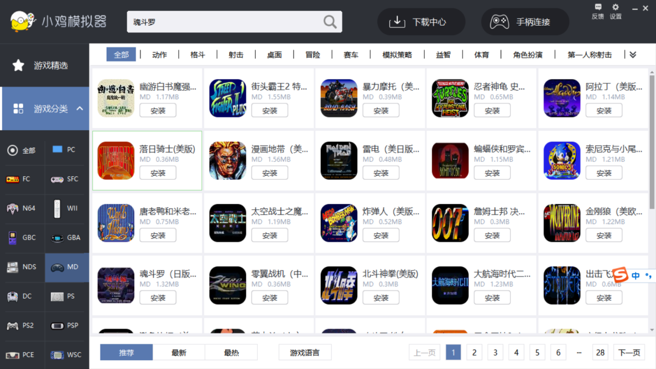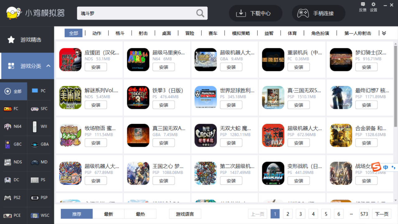 小鸡模拟器包含了街机、索尼(SONY)、世嘉、任天堂等经典电脑和掌上游戏机,支持PSP模拟器、GBA、NDS、街机模拟器、GBA、PS模拟器、GBC、SFC(超级任天堂SNES)、FC(红白机NES)、MD(世嘉MEGA DRIVE)、PS1、PS2(电脑支持) 等模拟器游戏。