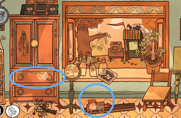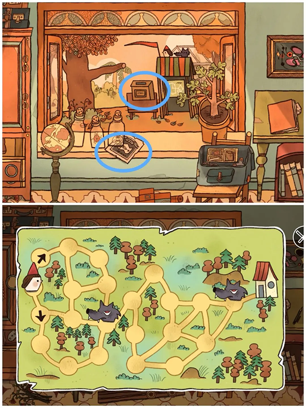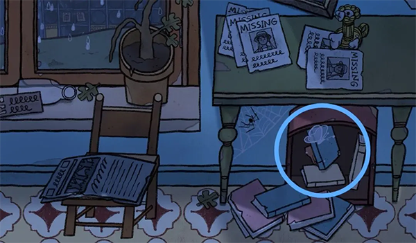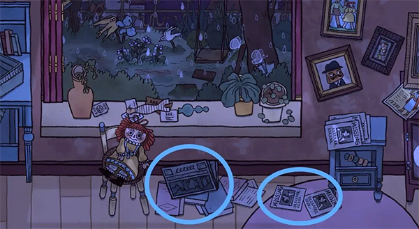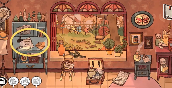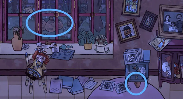 13、信上需要完成填字游戏(信上需要填的信息在过去场景里凳子上的明信片背面有所提示还有日记本上的玛丽阿姨),出现新的未来年份(蓝色场景同样出现新年份)。