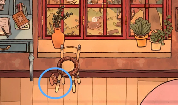 7、来到粉色未来场景,椅子腿下有个碎片。