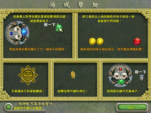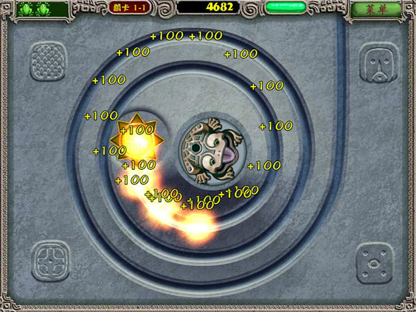 玩家需要控制一只石青蛙,通过吐出彩珠来消除轨道上颜色相同的珠子