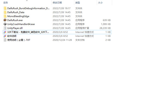 1、在本站下载游戏的压缩包后解压打开,启动文件夹中的“DaifuRush.exe”。