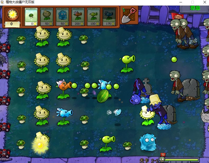1、不同于其他版本,该版本讲究的就是一个植物碾压僵尸,在该版本中是很少会出现植物打不过僵尸的情况的,基本上所有植物的战力都要高于僵尸很多。