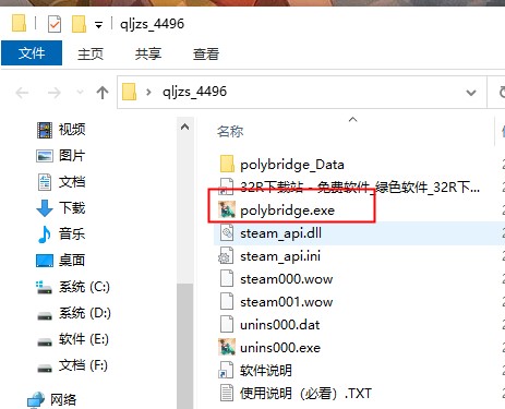 2、游戏无需安装,双击polybridge.exe即可启动,如图;