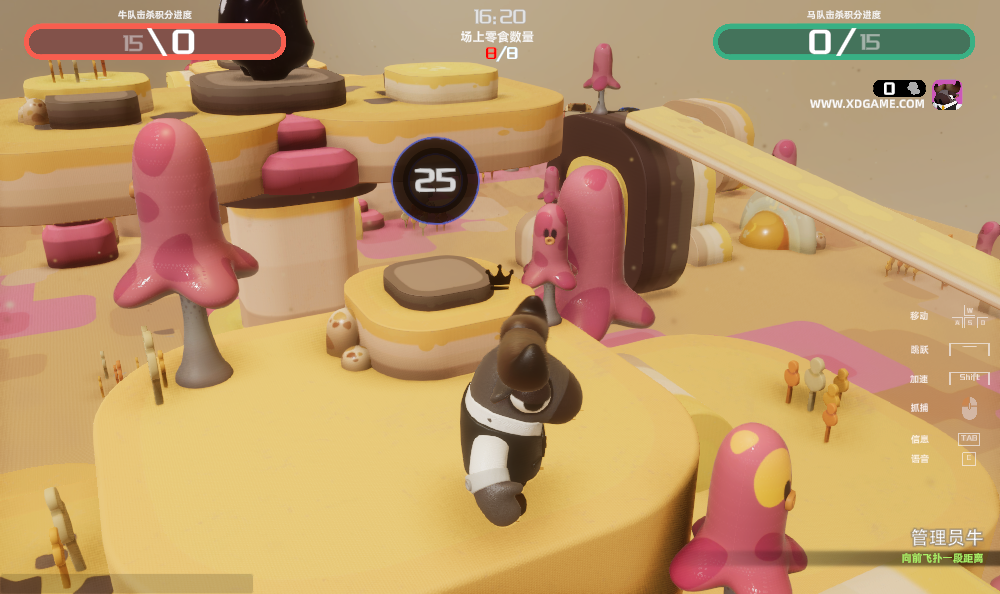 4、而红蓝双方需要小心管理员的追捕,又要与对方共同抢夺食物。