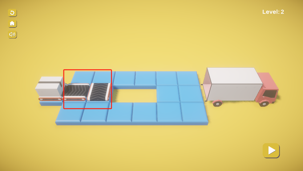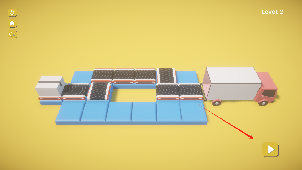 进入游戏后,玩家需要通过合理摆放传送带,将货物运输到货车上