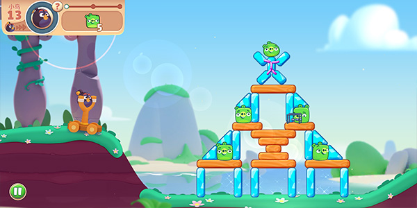 2、在基础玩法上与前作基本相同,但是本作有了完整的辅助线,仅需拉动弹弓即可看到,而且新冒险中无需玩家主动释放技能