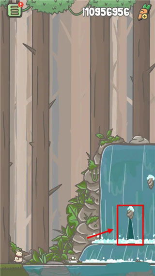 5、连续点击瀑布上方被卡住的金锄头,至少200下,可以拔出金锄头。