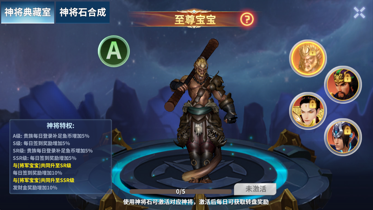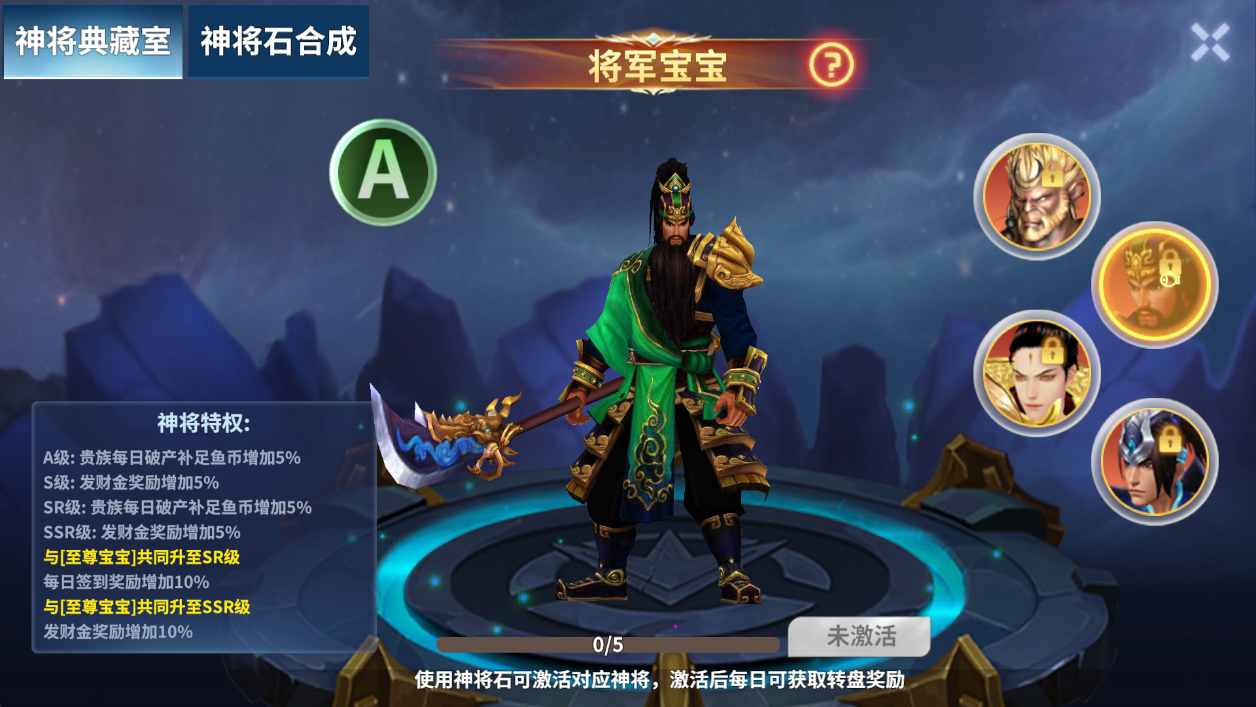 ●神将激活后可解锁神将专属特权,每日还可领取该神将专属奖励。