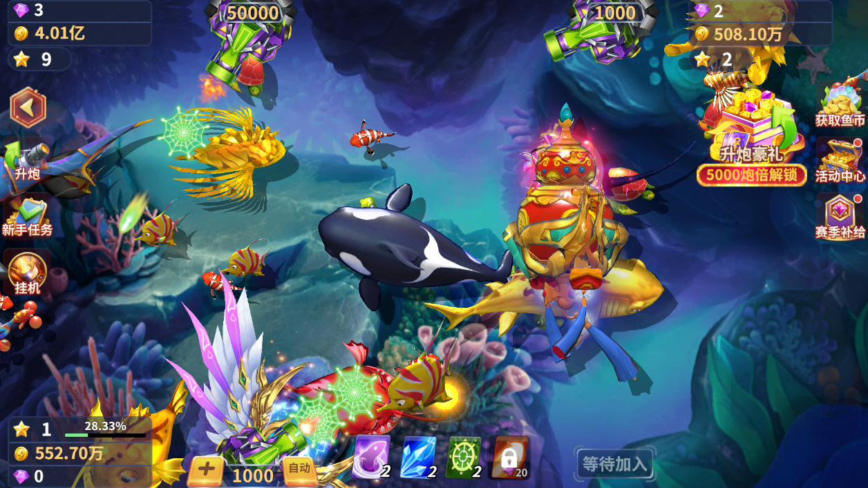 3、特殊鱼会在屏幕内产生闪电、爆炸等特效,可获得更高收益