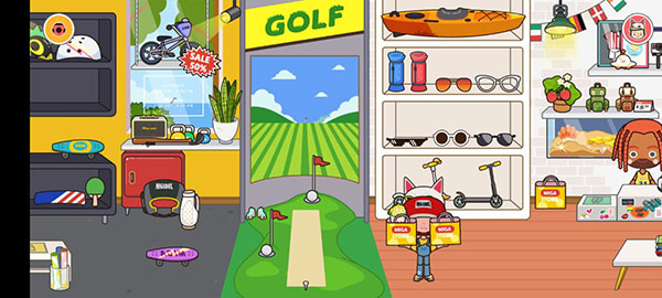 -运动用品店:前往运动用品超市,可以购买高尔夫用品,或者来个拳击训练