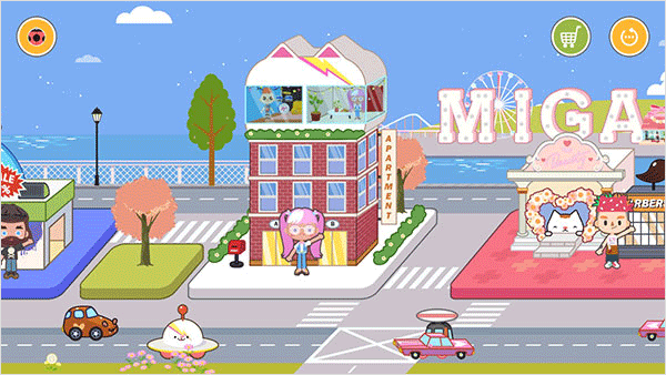 1、首先打开米加小镇商店,我们就会来到一片繁华的商业街区;