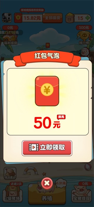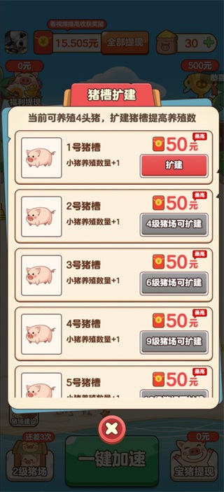 5、扩建猪槽可以增加养猪数量,同时领取最高50元的红包奖励;