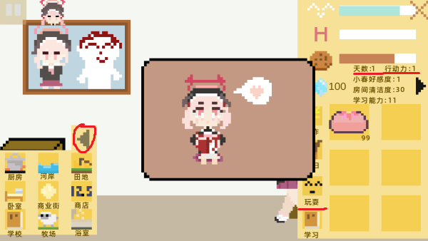 3、玩家需要保持房间的清洁度,以维持小春的心情值。