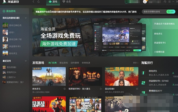 《海鲨游戏客户端》是一款以游戏为中心的游戏平台,可以实时的分享游戏心得,界面十分整洁清晰,还带有一点酷炫,操作也非常简单,很容易上手,可以在平台上玩这种游戏.