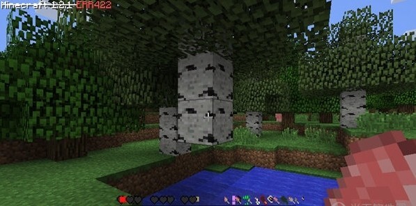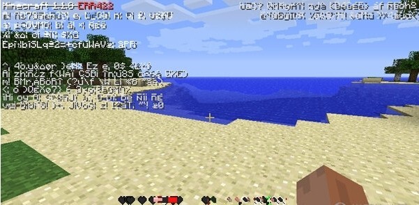 :左上角显示的版本号诡异,如 "Minecraft 1.7.6 ERR422",且后面两个数字随机。玩家的生命值和饱食度不断跳动,无法看清具体数值。