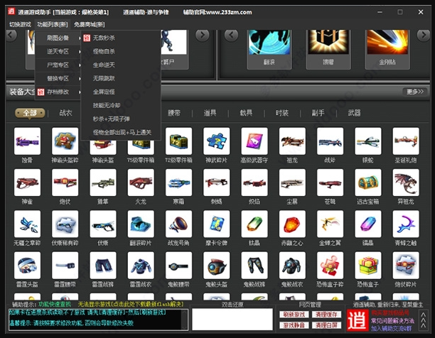 爆枪英雄逍遥辅助器是一款针对 4399 动作射击类游戏《爆枪英雄》的辅助工具。玩家可以使用这款修改器进行多种的游戏属性修改,例如弹药、血量、银币等掉落率的增加、全图定怪、必爆红装、战斗力的提升等等。