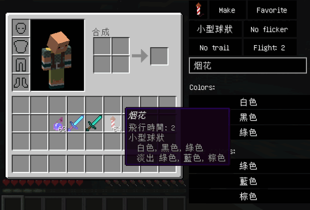 :在工作台上右键点击输出方格,可合成出最大数量的物品。在单人游戏中,按住 Shift 将物品放进箱子或从箱子拿出物品放进背包时,会把同类型的物品全部搬运并整理好。