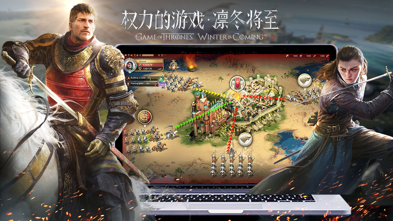 《权力的游戏 凛冬将至》是以传奇史诗巨制美剧《权力的游戏》(Game Of Thrones)为蓝本开发的新一代3D策略游戏。游戏秉承HBO式独有恢弘写实风格,经典重现维斯特洛历史风貌,以经典IP元素还原,极致游戏画面,创意策略玩法三大特色为依托。玩家可以在游戏中操控原著经典英雄人物一起指挥军队,攻城掠地,登上铁王座,谱写属于自己的历史篇章。