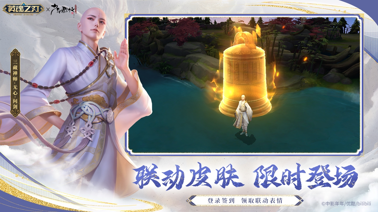 3. 联动皮肤,钜惠来袭!曹操-萧瑟·问剑皮肤、三藏禅师-无心·问剑皮肤携手登场,闯荡江湖!2月21日-5月19日活动期间,购买全新联动皮肤,还有额外福利大放送,萧瑟·问剑头像、无心·问剑头像等精美奖励等你来拿!同时,神雕侠·雷无桀·问剑皮肤、小龙女·叶若依·问剑皮肤、神雕侠·雷无桀·问鼎皮肤、小龙女·叶若依·问鼎皮肤重返江湖,快把皮肤抱回家!