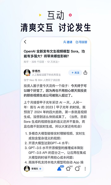 知乎最新版本汇集了海内外各路的达人、大佬,涉及各行各业的人,在这里你可以分享生活工作中遇到的难题,学习他人分享的技巧经验,专门向行业的专家请教问题。