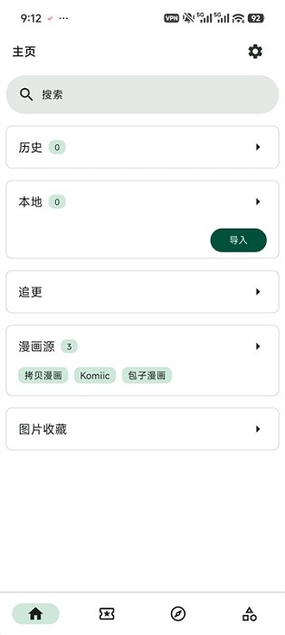 支持导入本地漫画和添加网络漫画源。