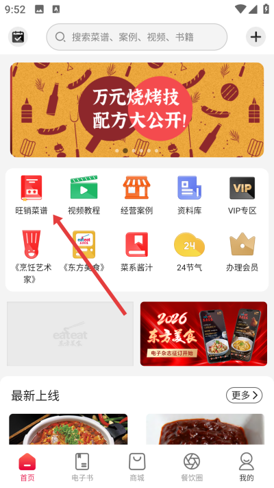 1、功能区找到菜谱图标,进入对应菜谱电子书分类页面,浏览各类菜系合集与热门菜品。