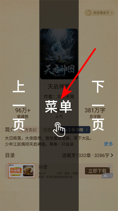 2、在阅读页点击屏幕中间,唤出操作菜单。
