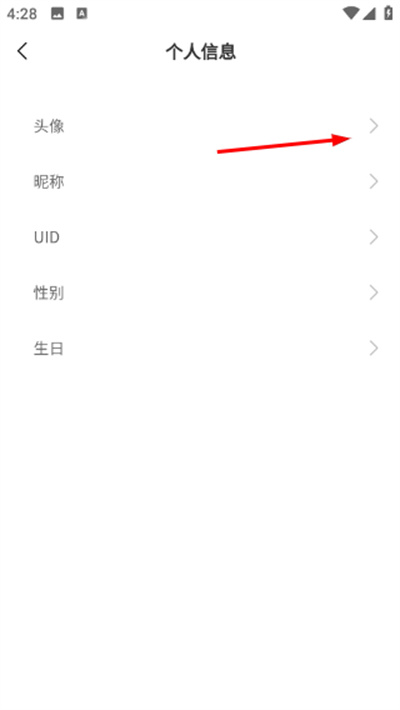 3、点击个人头像进入个人信息设置页面,列表展示头像昵称UID性别生日等选项,可按需修改对应的账号基础资料内容。